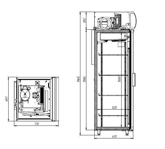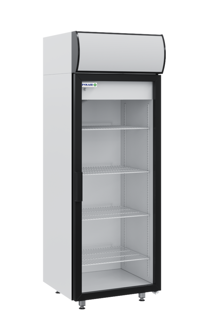 Холодильный шкаф со стеклянной дверью (стеклопакет в алюминиевой раме) имеет вертикальную внутреннюю подсветку и подсветку канапе. Сторону открывания двери легко изменить. Внешние и внутренние обшивки шкафа изготовлены из стали с полимерным покрытием.