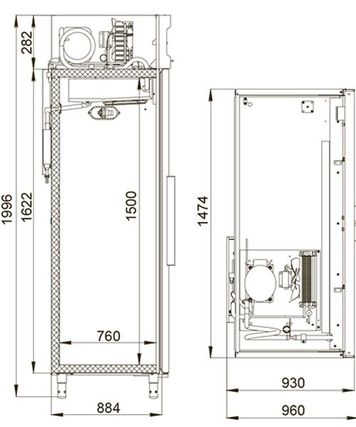 Хладоэлеметы для поддержания температуры в шкафу при отключенном электропитании приобретаются отдельно.